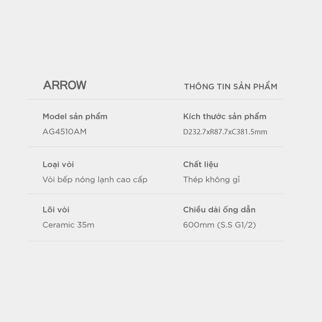 | Vòi nước | Vòi sen | 5 năm | Chính hãng Arrowhome |